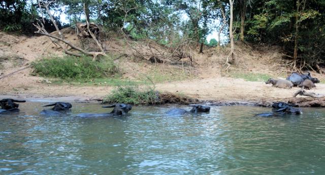 ...vorbei an Wasserbüffeln bis zur Nasenspitze im Wasser....